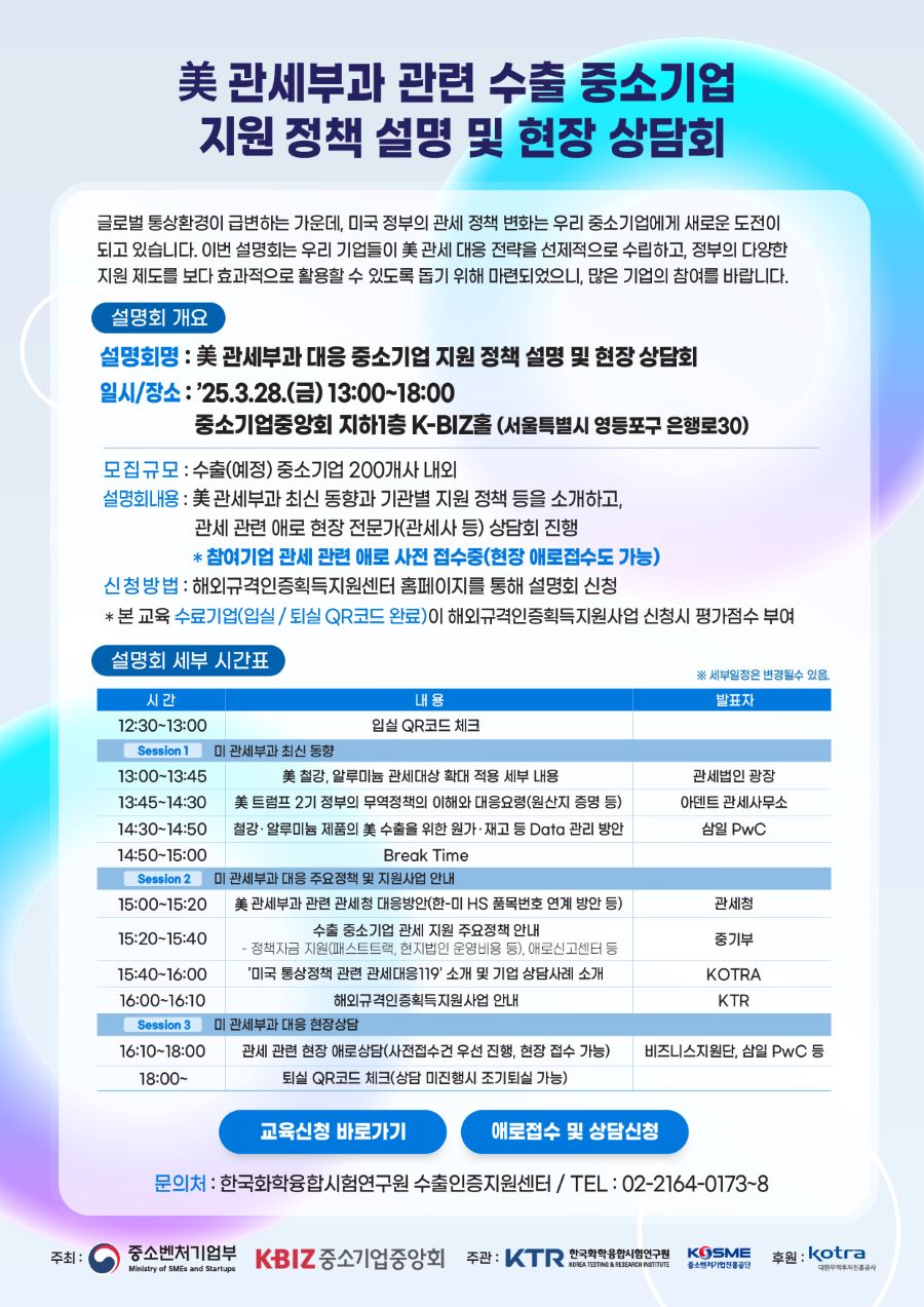 [KTR] 美 관세부과 관련 수출 중소기업 지원 정책 설명 및 현장 상담회