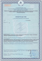 -러시아연방 보건 위생국에서 발행하는 인증서이며, 사람이 직접 섭취하거나 접촉하는 제품에 대해 인체에 무해하다는 것을 증명하는 인증서이며, 2010.06.18 CU COMMISSION에서 공표한 DECREE NO.299에 따라 해당 품목에 대해 국가 위생 등록증을 발급.